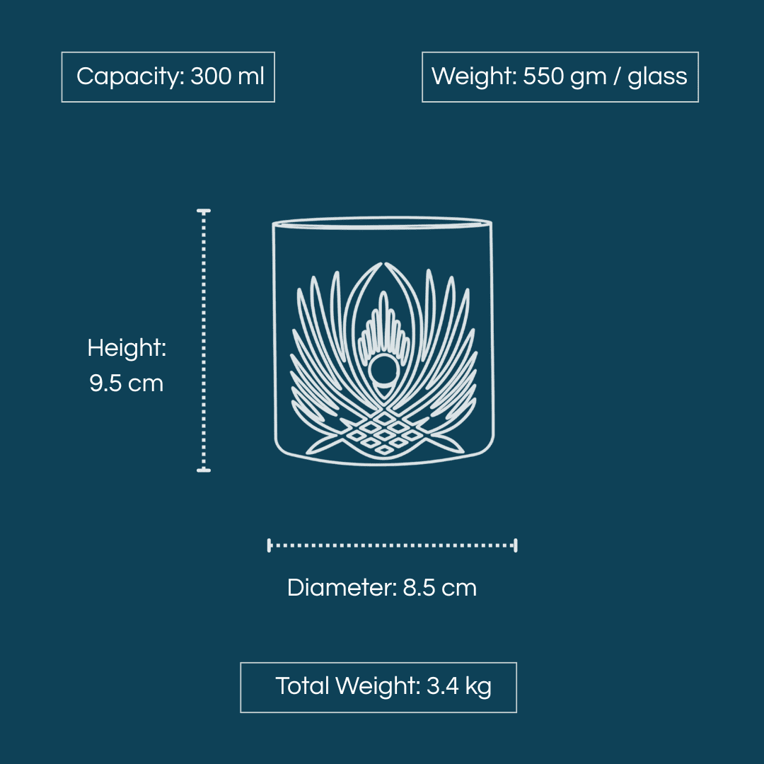 The IVEO Crystalline Luxur set includes six 300 ml DOF glasses, expertly hand-cut from premium lead-free crystalline to showcase exceptional clarity and luminous brilliance. Defined by its bold, sculpted cuts and richly detailed patterning, Luxur delivers a dramatic, high-end aesthetic that enhances every pour. Elegant, durable, and visually striking, this set is ideal for serving whisky, bourbon, rum, or crafted cocktails