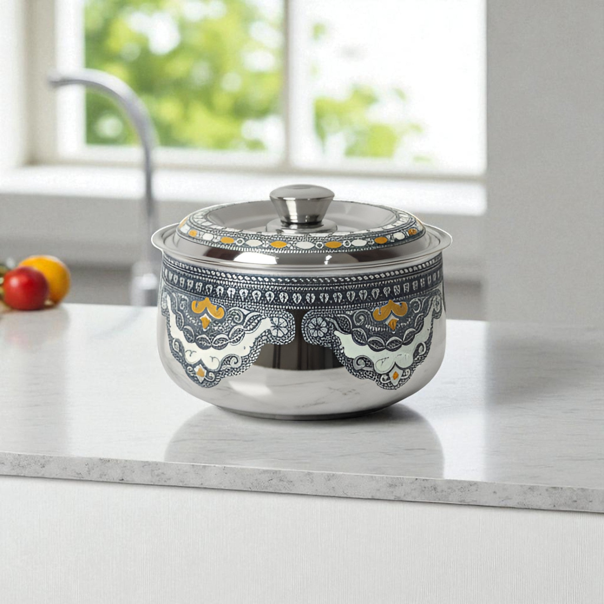 Introducing the Antique Stainless Steel Casserole—also known as the Roti Pot—where heritage elegance meets modern endurance. Expertly crafted from BPA‑free, food‑grade stainless steel, this 2.2 L casserole features a lustrous, antique-inspired finish and secure-fitting lid to retain heat and moisture. Built for everyday family meals, festive feasts, or thoughtful gifting, it combines shatter‑resistance and corrosion‑proof strength with easy‑to‑clean convenience. Whether you’re keeping rotis soft and warm, serving gravies in style, or enhancing your kitchen décor, this roti pot brings timeless utility and lasting beauty to every occasion.