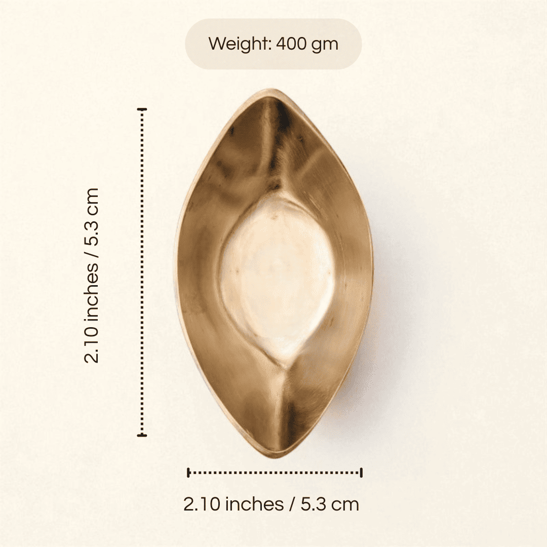 • Graceful Boat Silhouette: Our Small Kansa Boat Handi boasts a distinctive, elongated boat-like shape, making it a truly unique addition to your dining table. This thoughtful design isn't just visually appealing; it's also perfectly sized for individual servings of your favorite curries, gravies, or side dishes.