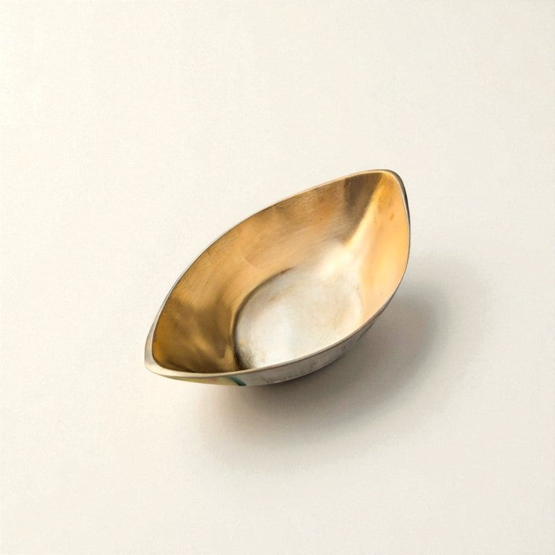 • Graceful Boat Silhouette: Our Medium Kansa Boat Handi boasts a distinctive, elongated boat-like shape, making it a truly unique addition to your dining table. This thoughtful design isn't just visually appealing; it also offers a convenient serving area, perfect for individual portions or sharing your favorite curries, dal, or side dishes.
